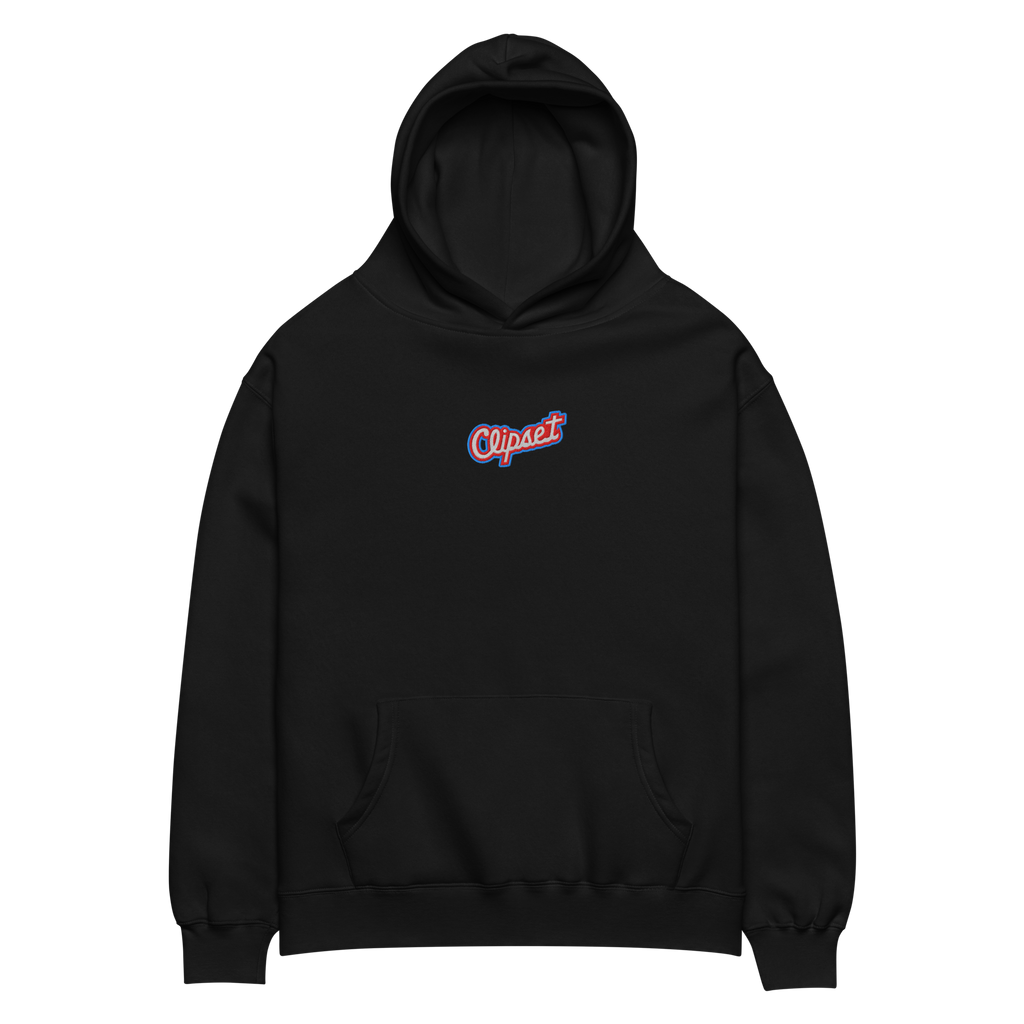 Center Court Clipset Embroidered Oversized Hoodie - Black